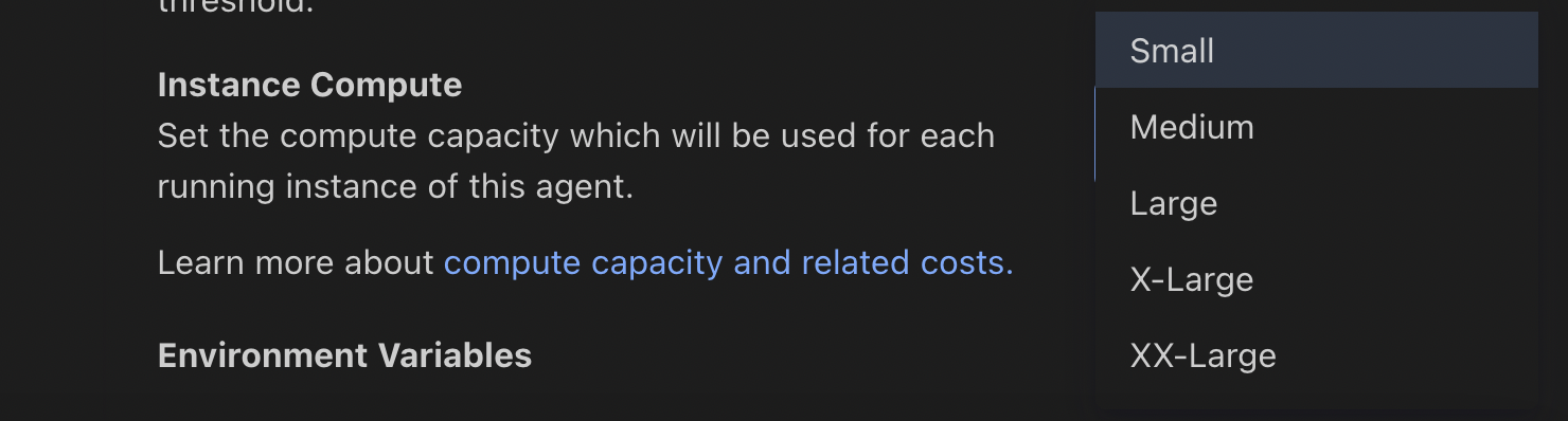 <figure><img src="https://2803907488-files.gitbook.io/~/files/v0/b/gitbook-x-prod.appspot.com/o/spaces%2FJF7AoTYz7NHacejws5p9%2Fuploads%2Fgit-blob-f967cbaea0dbb6e74f60591c520682fa05b587a5%2FScreen%20Shot%202024-07-18%20at%209.19.39%20PM.png?alt=media" alt=""><figcaption><p>Agent Size Selection</p></figcaption></figure>