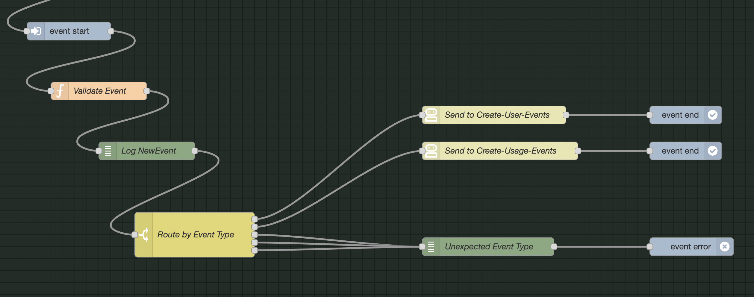 Using this node allows a flow to effectively route messages to different agents based on data type as shown in the flow below.