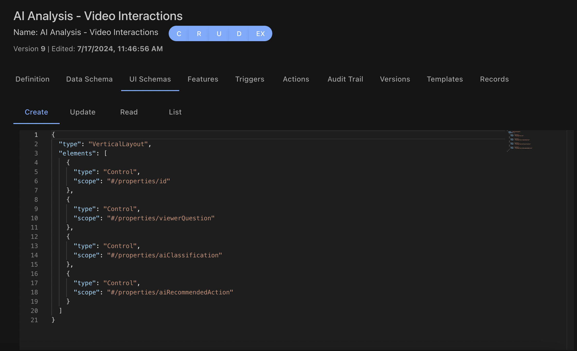 UI Schemas provide customization for how Contextual displays the Create, Update, Read and List views of your Object Type records. At any time you can revert changes to your UI Schemas to reset them.