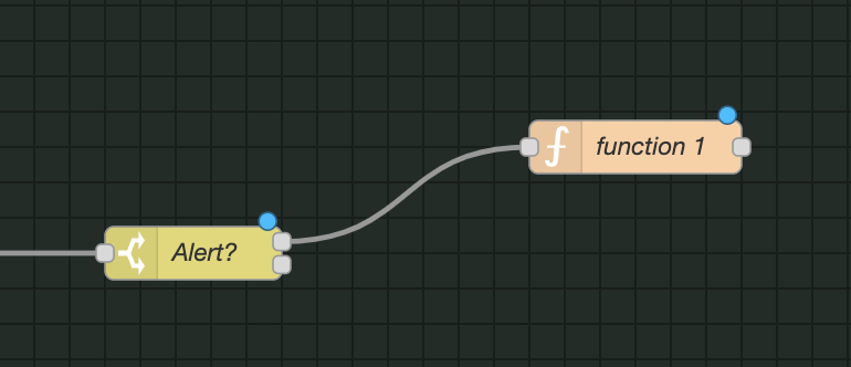 20. Drag a new Function node onto the canvas and wire it to the "is true" output of the Switch node, like this: